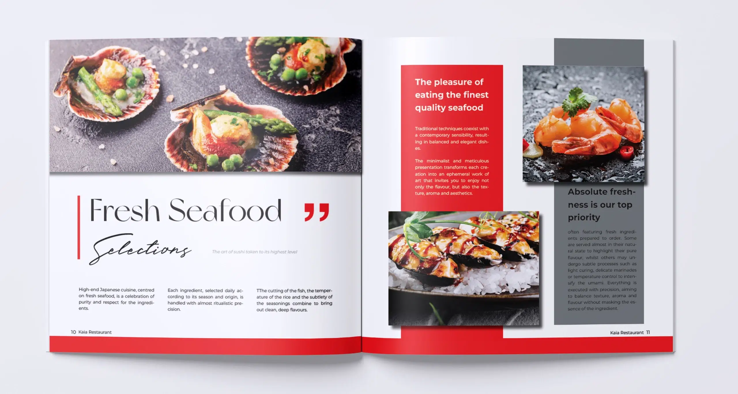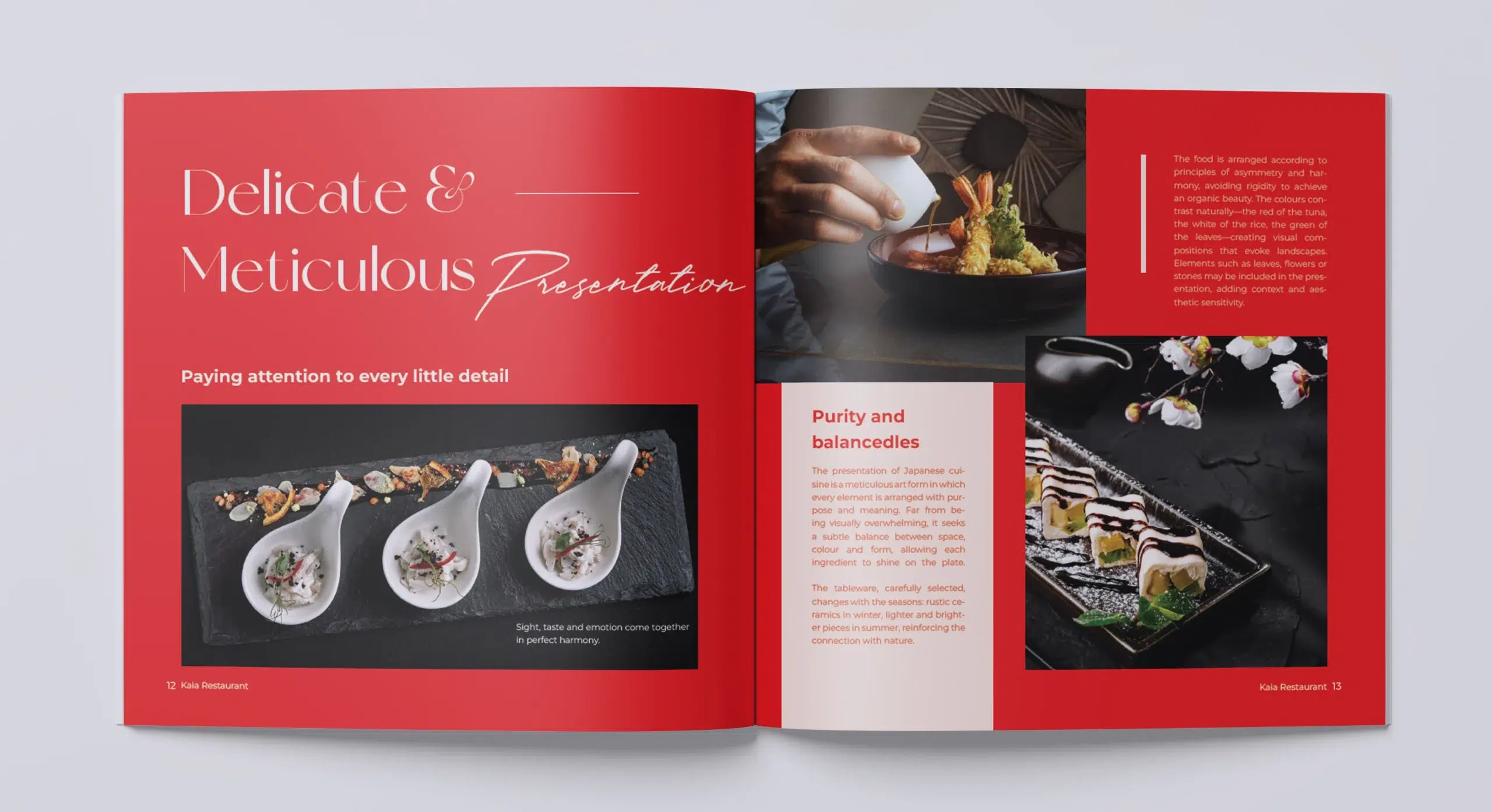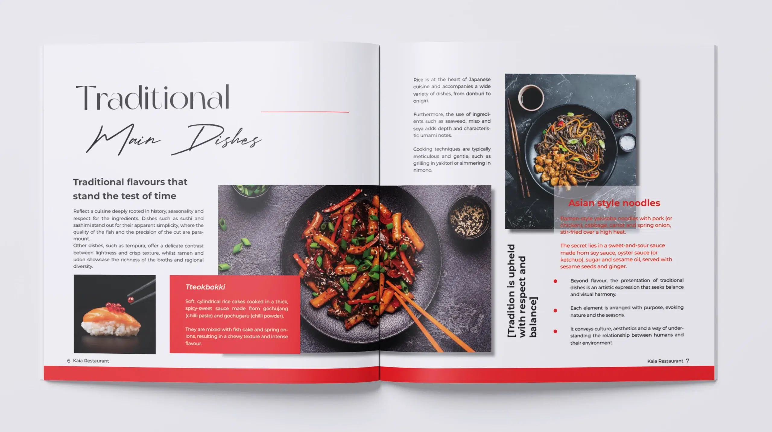 Diseño y creación de catálogo de Restaurante Japonés de 210 x 210 mm, de 13 páginas.