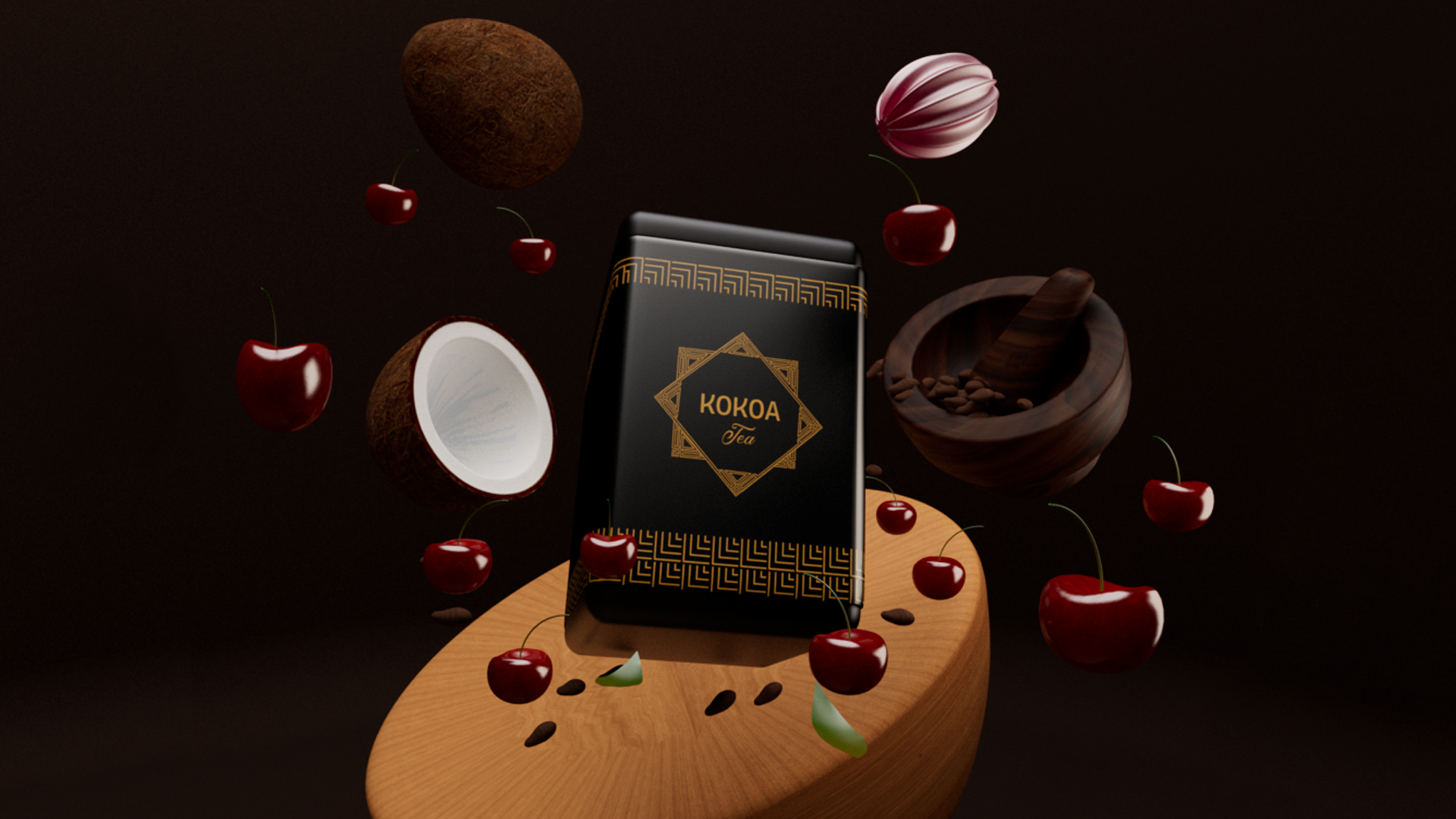 Creación del logotipo de la marca de tea Kokoa en 3D.
